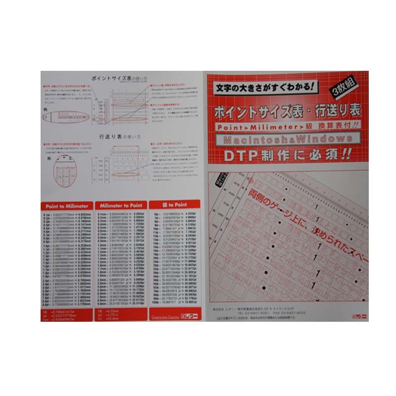 レター 写植級数表 ポイントサイズ表・行送り表(3枚組)