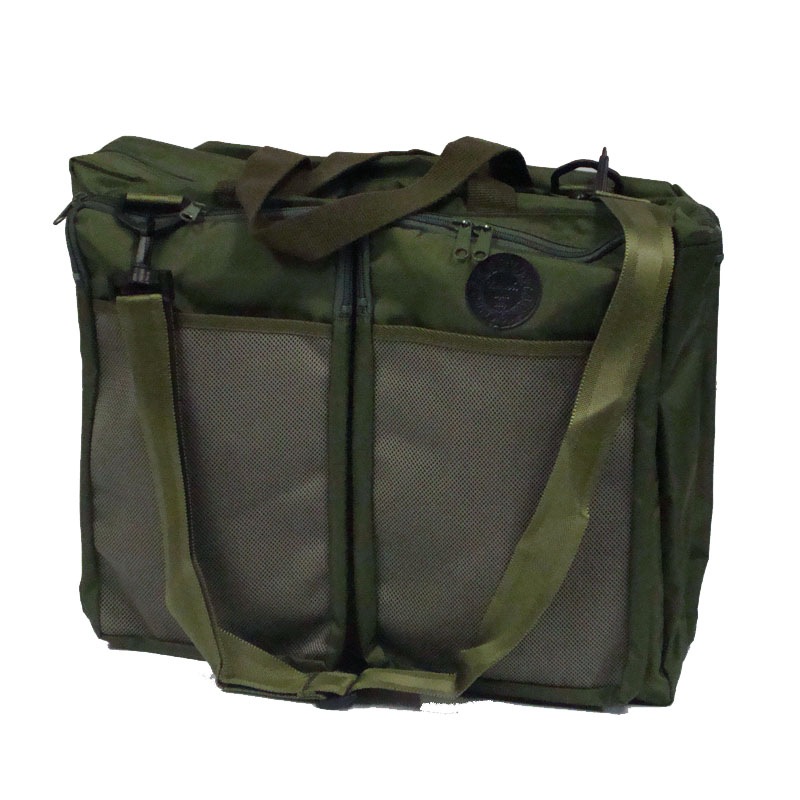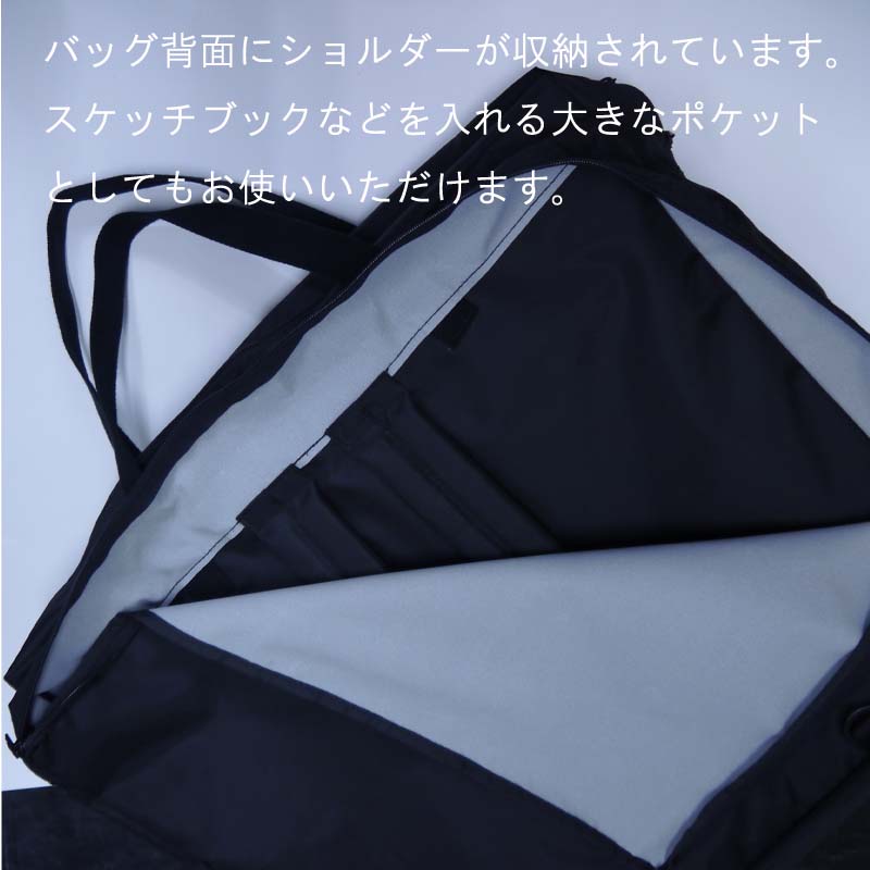 F6キャンバス2枚(クリップ付)、スケッチブックが収納できる大型ポケット、小物収納ポケットなど機能充実のバックです。手提げ、ショルダー、リュックの3通りの使用が可能。仕様:色グリーン、防水加工ナイロン製。寸法:36×43×18cm。日本製。